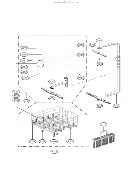 The Rack Assembly is an OEM replacement part for LG dishwashers. It is the lower dish rack used to store and hold dishes during all wash cycles. Causes of a faulty rack assembly can be damage such as cracks or broken wires, especially after extended use or improper loading that puts excess strain on the components. Symptoms of a bad rack assembly include: