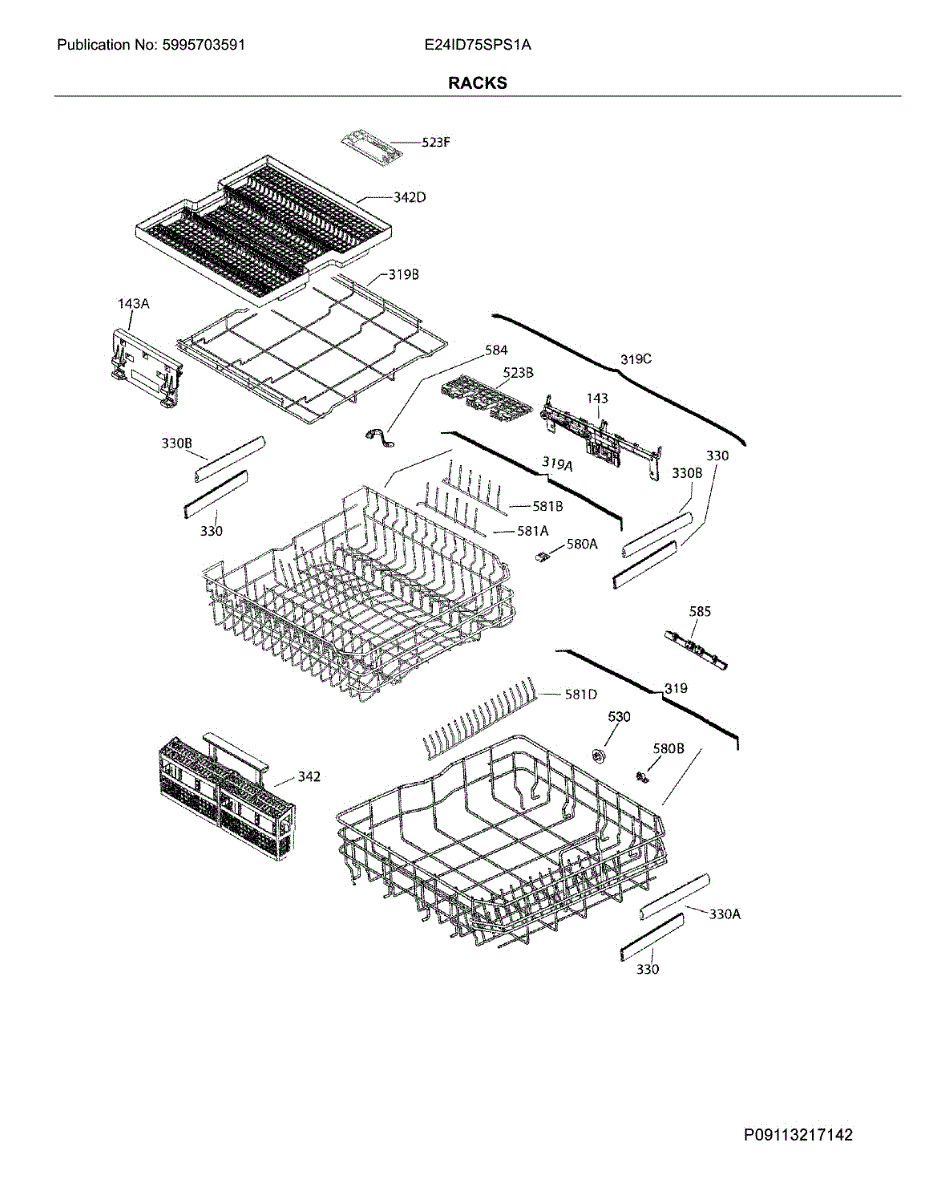 Replacement dish rack for dishwashers. Installs inside the dishwasher cavity to hold dishes during wash cycles. Order when rack is cracked or broken.