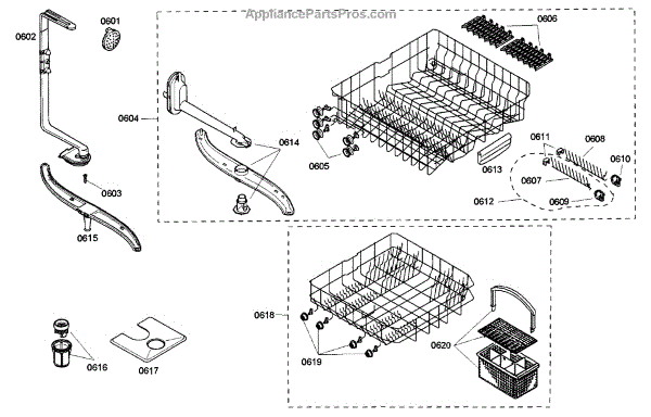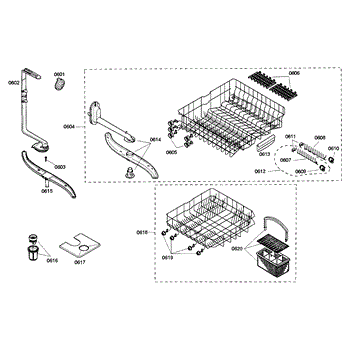 The Silverware Basket Assembly is an OEM part for Bosch dishwashers. This basket is located in the lower rack and is used to hold utensils securely during the wash cycle.