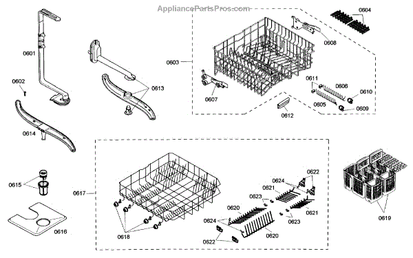 The Spray Arm is an OEM part for Bosch dishwashers. It is responsible for evenly distributing water across the dish racks during wash cycles using a rotating arm and nozzle design. Causes of a bad spray arm can include mineral or limescale buildup that inhibits water pressure/flow, or damage from accidental impact that impacts its rotation. Over time, normal wear and tear on plastic spray arms can also affect optimal spray coverage. Symptoms of a bad spray arm include: