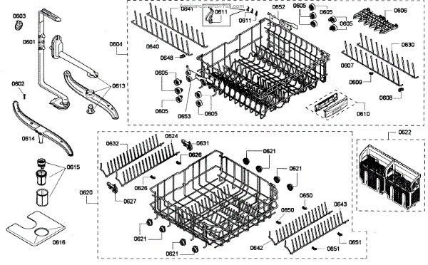 The Upper Dishrack Assembly is an OEM replacement part for Bosch dishwashers. Causes of a bad assembly include cracked or broken rack modules from years of abusive slamming during loading. Mineral buildup may also lead to jammed or stuck tines no longer gliding freely between positions. Symptoms of a bad Upper Dishrack include: