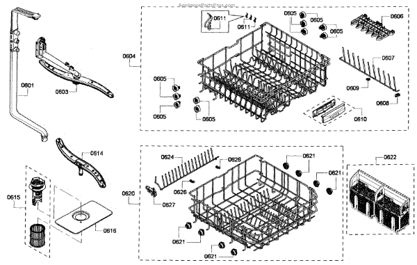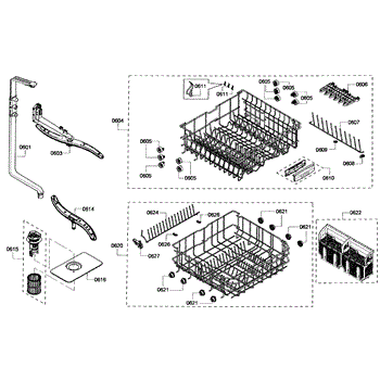 The Upper Dishrack Assembly is an OEM replacement part for Bosch dishwashers. Causes of a bad assembly include cracked or broken rack modules from years of abusive slamming during loading. Mineral buildup may also lead to jammed or stuck tines no longer gliding freely between positions. Symptoms of a bad Upper Dishrack include: