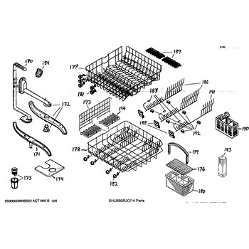 The Silverware Basket Assembly is an OEM part for Bosch dishwashers. This basket is located in the lower rack and is used to hold utensils securely during the wash cycle.