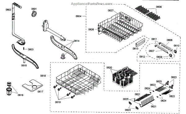 The Spray Arm is an OEM part for Bosch dishwashers. It is responsible for evenly distributing water across the dish racks during wash cycles using a rotating arm and nozzle design. Causes of a bad spray arm can include mineral or limescale buildup that inhibits water pressure/flow, or damage from accidental impact that impacts its rotation. Over time, normal wear and tear on plastic spray arms can also affect optimal spray coverage. Symptoms of a bad spray arm include:
