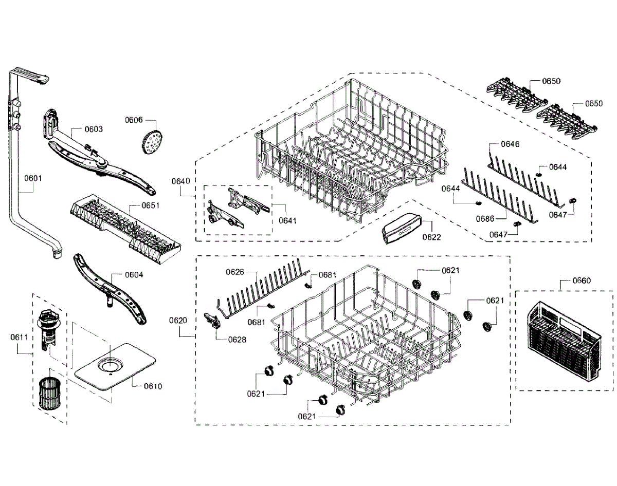 Replacement silverware basket for Bosch dishwashers. Sits in the lower rack to organize utensils during wash cycles. Order if yours is cracked or missing.