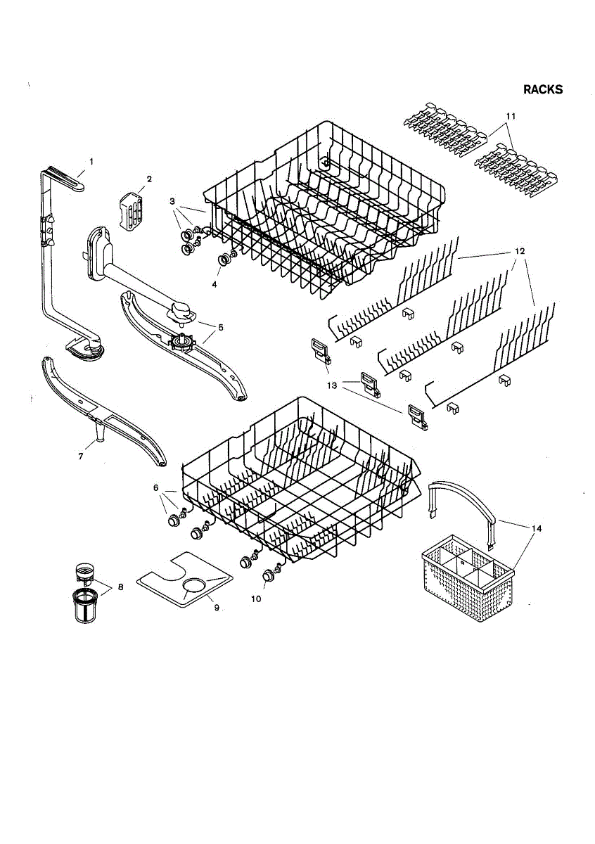 Lower dishrack assembly for dishwashers. Slides in and out for easy loading. Replace when cracked, rusted, or prongs are broken or missing.