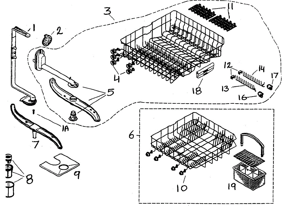 Lower dishrack assembly for dishwashers. Slides in and out for easy loading. Replace when cracked, rusted, or prongs are broken or missing.
