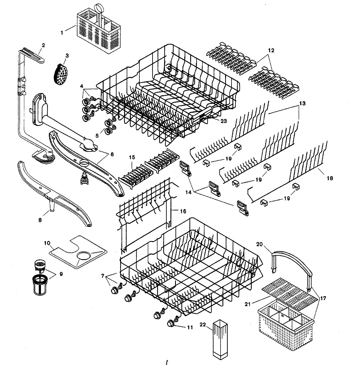 Lower dishrack assembly for dishwashers. Slides in and out for easy loading. Replace when cracked, rusted, or prongs are broken or missing.