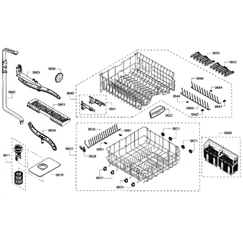 The Insert is an OEM part for Bosch dishwashers. It is a multi-functional component located inside the dishwasher tub that assists in loading, washing, and drying dishes.
