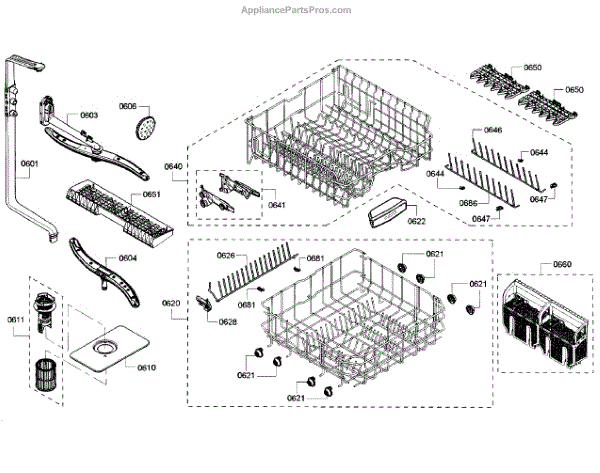 Causes of a bad insert can include wear and tear of moving parts over time, mineral buildup that impairs movement, or damage to shelves or tines that prevent proper function.