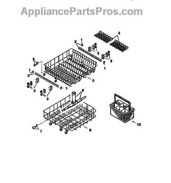 Replace your broken, cracked, or missing dishwasher silverware basket. Holds utensils securely in the lower rack during wash cycles. Includes handle.