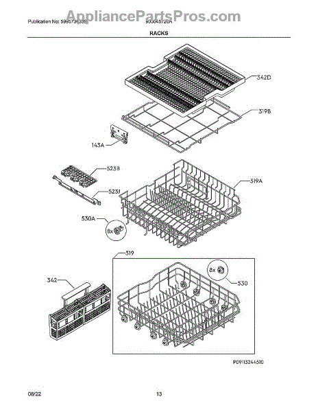 This rack assembly replaces a damaged or worn refrigerator/dishwasher rack to restore stable storage and smooth operation of the shelving system. Durable wire construction keeps items supported and organizes interior space. What it does: