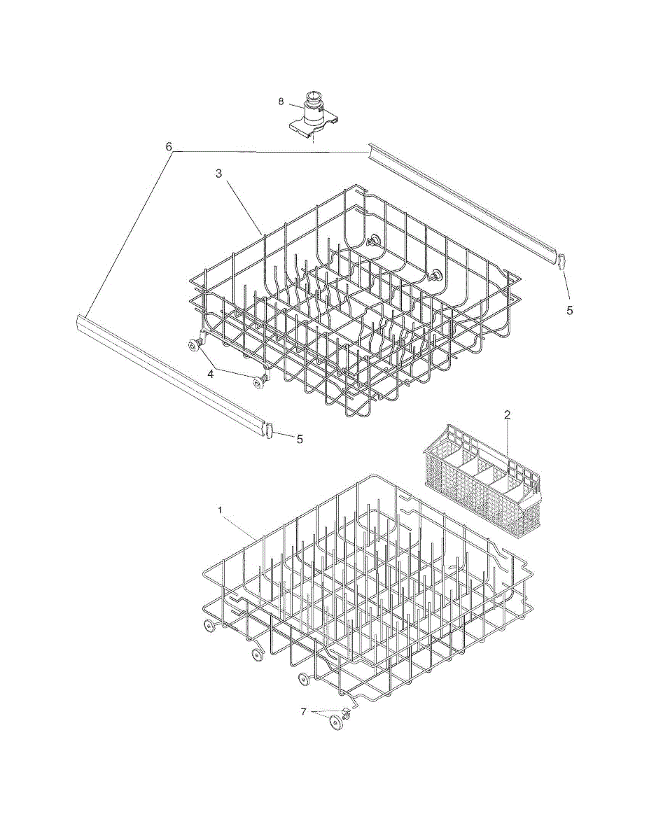 Replacement dishwasher rack assembly that holds dishes during wash cycles. Needed when original rack is rusted, cracked, or wire coating is worn.