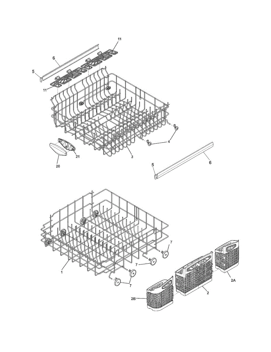 Replaces a rusty, cracked, or damaged dishwasher upper rack. Restores smooth gliding and secure loading for cups and bowls on the top level.