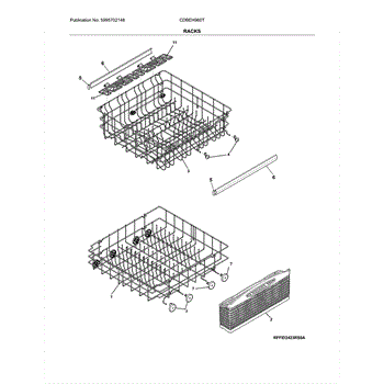 The Rack Assembly is an OEM part for Frigidaire dishwashers. It holds silverware securely in place during the cleaning and drying cycles. This basket measures approximately 16.88" X 8" and has two lids. Please Note: This assembly no longer comes as 3 separate pieces and is now 1 piece.