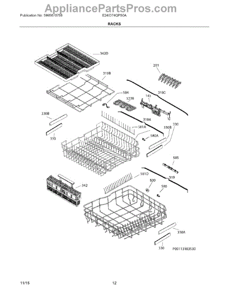 This replacement cutlery basket holds forks, knives and spoons in the dishwasher lower rack to keep silverware organized and separated for better cleaning. It restores proper loading and prevents utensils from falling through the rack. What it does