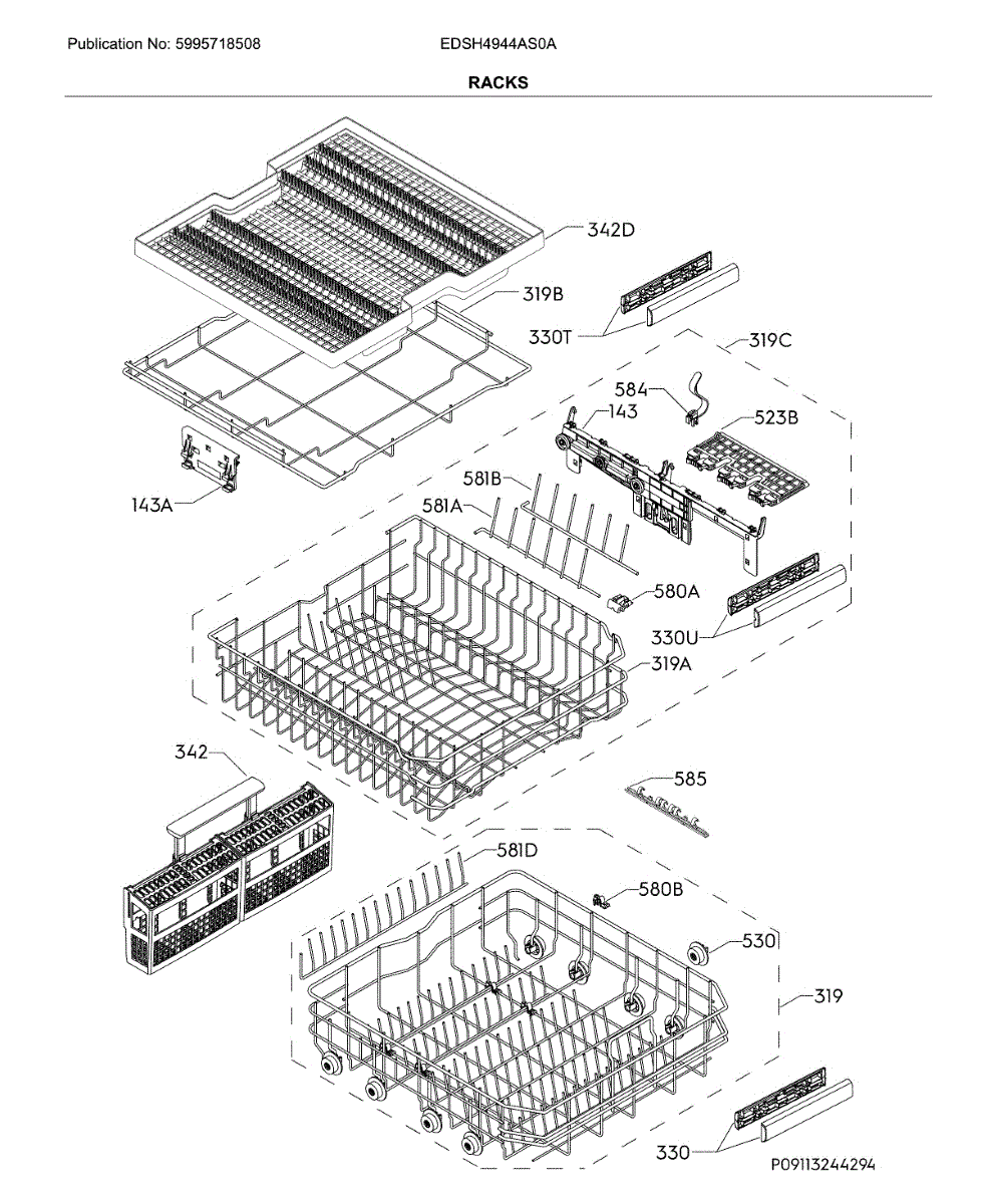 Replacement dish rack for dishwashers. Installs inside the dishwasher cavity to hold dishes during wash cycles. Order when rack is cracked or broken.
