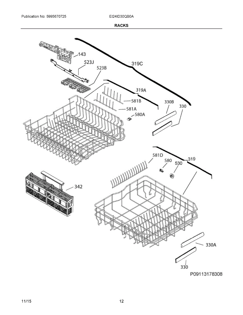 Lower dish rack for your dishwasher. Holds plates, bowls, and larger items during wash cycles. Replace if cracked, broken, or wheels are worn out.