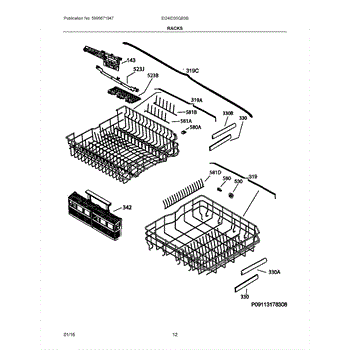 Molded cabinet divider that separates compartments inside your dishwasher. Replace if cracked, broken, or missing to restore proper spacing and organization.