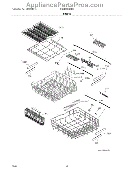 This rack assembly replaces a damaged or worn lower dishwasher rack to restore secure, smooth dish loading and stable support for plates, pots and pans. It helps keep items organized and prevents tipping or excessive movement during cycles. What it does: