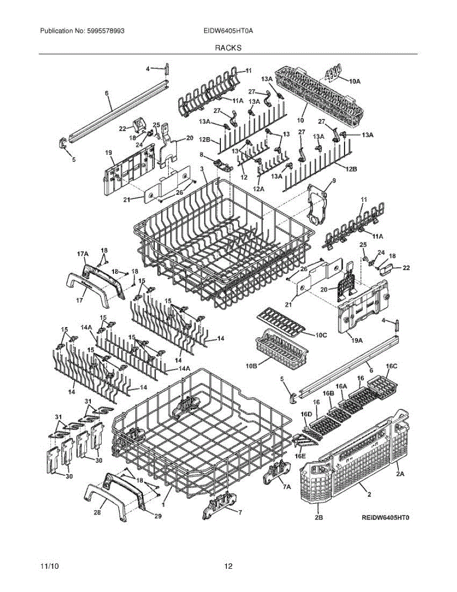 This lower dishrack is the dishwasher's main bottom rack that holds plates, bowls and cookware securely during cycles and restores proper loading after damage or wear. It replaces a cracked, sagging or rusted lower rack to help dishes sit upright for effective cleaning. What it does: