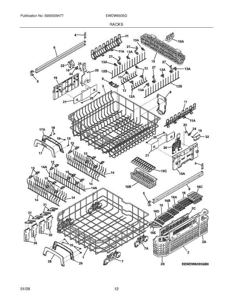 This lower dishrack is the dishwasher's main bottom rack that holds plates, bowls and cookware securely during cycles and restores proper loading after damage or wear. It replaces a cracked, sagging or rusted lower rack to help dishes sit upright for effective cleaning. What it does: