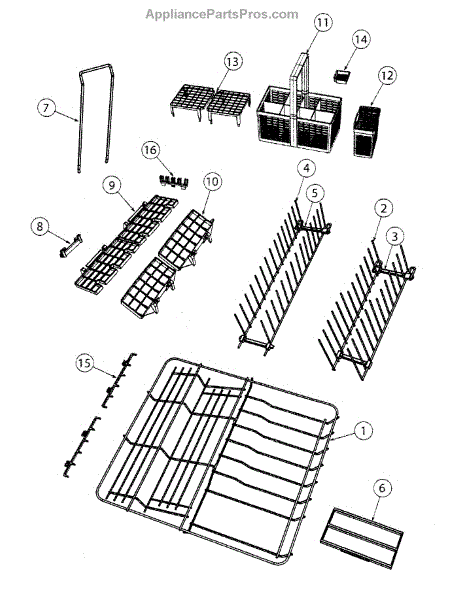 A lower base rack assembly that supports dishes and cookware and restores proper loading and sliding function in the dishwasher. Replaces a worn, bent, or damaged lower rack to keep items secure during cycles. What it does: