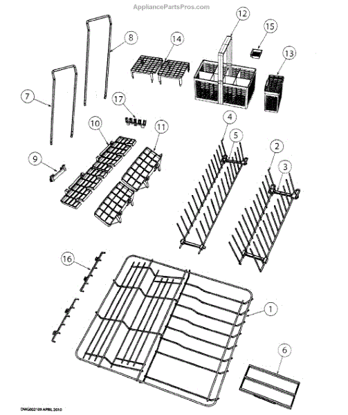 A lower base rack assembly that supports dishes and cookware and restores proper loading and sliding function in the dishwasher. Replaces a worn, bent, or damaged lower rack to keep items secure during cycles. What it does: