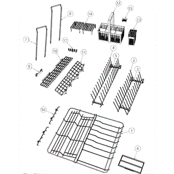 A lower base rack assembly that supports dishes and cookware and restores proper loading and sliding function in the dishwasher. Replaces a worn, bent, or damaged lower rack to keep items secure during cycles. What it does: