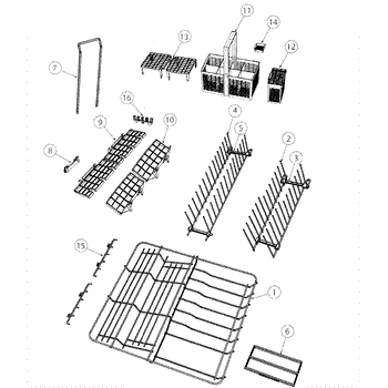 A lower base rack assembly that supports dishes and cookware and restores proper loading and sliding function in the dishwasher. Replaces a worn, bent, or damaged lower rack to keep items secure during cycles. What it does: