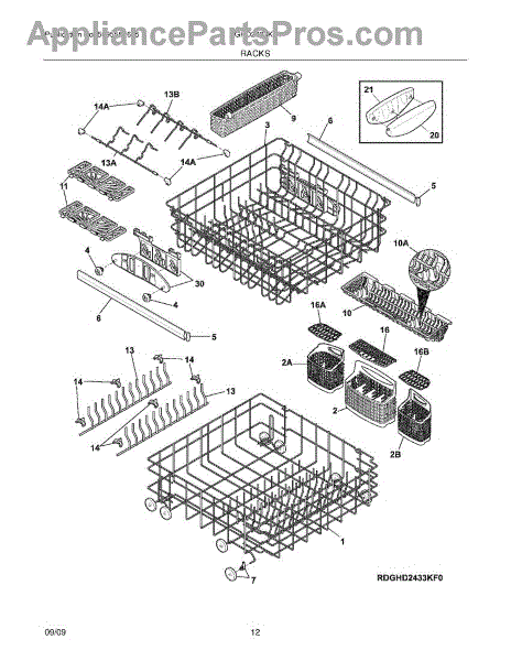 Parts for Frigidaire DGHD2433KF1: 13 - Racks Parts