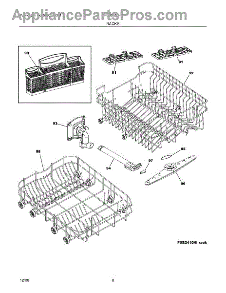 The Silverware Basket is an OEM replacement part for Frigidaire dishwashers. Situated within the lower rack, its wavy walls separate and contain pieces safely during the wash cycles. Causes relate to unavoidable wear from years use. Over time, mineral buildup accumulates within intricate wires possibly jamming movable parts or detaching segments altogether through corroded metals. Symptoms of a bad basket include: