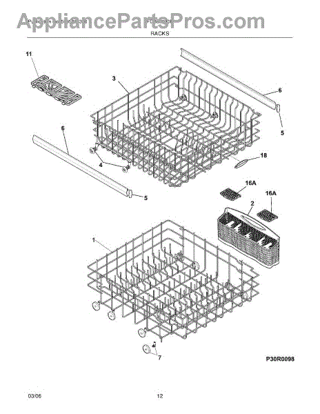 Parts for Frigidaire FDBB2040FS0: 13 - Racks Parts