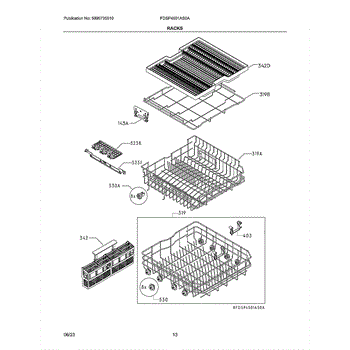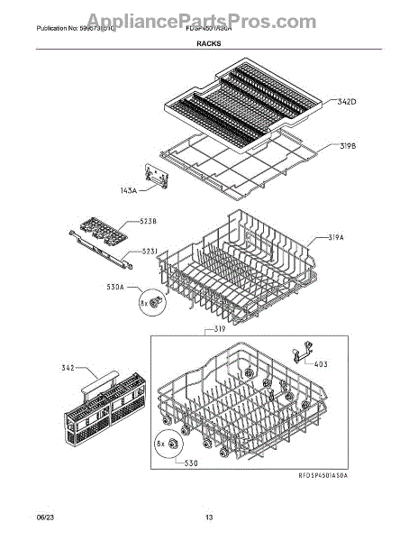 This rack assembly replaces a damaged or worn refrigerator/dishwasher rack to restore stable storage and smooth operation of the shelving system. Durable wire construction keeps items supported and organizes interior space. What it does: