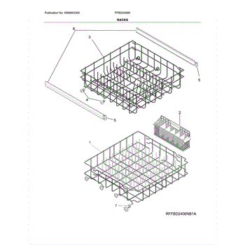 The Dishwasher Rack Assembly is an OEM part for Frigidaire dishwashers. It provides an adjustable racking system inside the dishwasher tub to accommodate varying sizes of dishes, utensils, and cookware on multiple shelf levels. The rack assembly measures about 22"x 21"x 9" including the wheels. Symptoms of a bad rack assembly include: