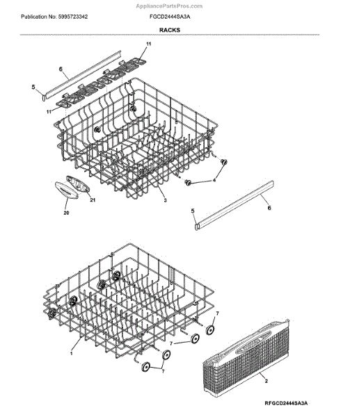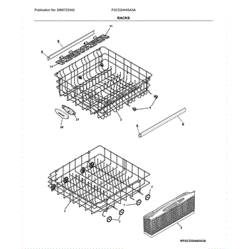 The Rack Assembly is an OEM part for Frigidaire dishwashers. It holds silverware securely in place during the cleaning and drying cycles. This basket measures approximately 16.88" X 8" and has two lids. Please Note: This assembly no longer comes as 3 separate pieces and is now 1 piece.