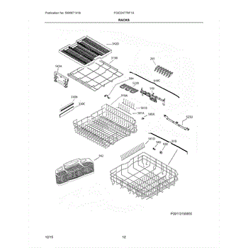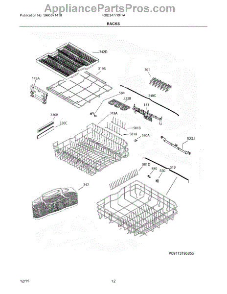 This rack assembly replaces a damaged or worn lower dishwasher rack to restore secure, smooth dish loading and stable support for plates, pots and pans. It helps keep items organized and prevents tipping or excessive movement during cycles. What it does: