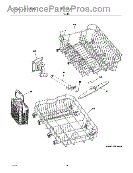 This dishwasher dishrack assembly replaces a bent, rusted, or broken rack so dishes load securely and roll smoothly in and out. It restores correct alignment and stable placement for reliable cleaning and easier loading. What it does: