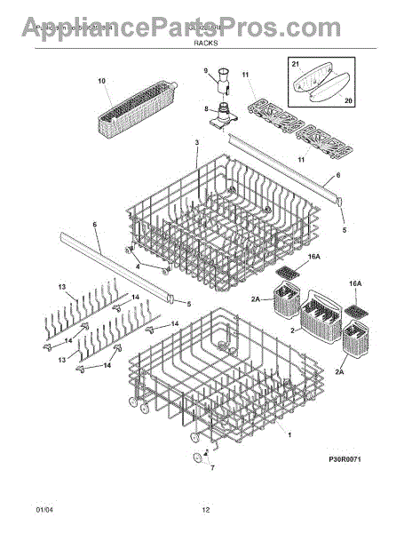 The Rack Assembly is an OEM part for Frigidaire dishwashers. It holds silverware securely in place during the cleaning and drying cycles. This basket measures approximately 16.88" X 8" and has two lids. Please Note: This assembly no longer comes as 3 separate pieces and is now 1 piece.