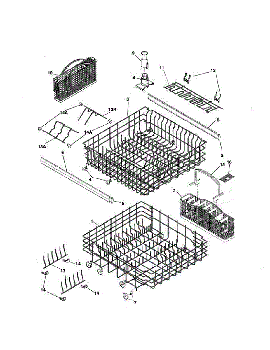 • The upper dishrack derailing or not staying on its tracks