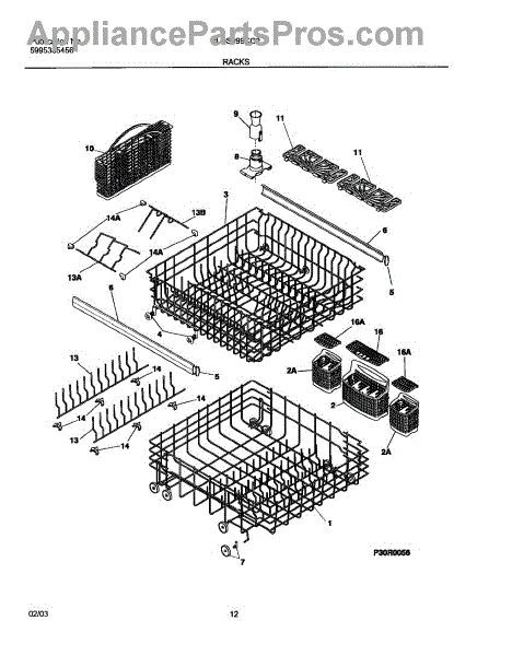 Causes of a bad lower rack can include warping or bending of wire prongs over time due to heavy loads, corrosion from constant moisture exposure, breakage of plastic parts, or shearing off of roller components. Heavy pots and pans can put significant strain on the rack.