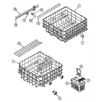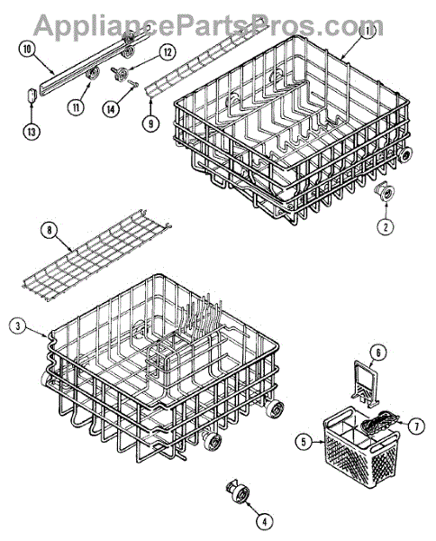 This is an upper dish rack assembly for dishwashers. It is located in the top section of the dishwasher and is meant to ensure dishes stay in place while the dishwasher is running. The dish rack assembly is durable but can experience damage, stains, or other issues. This may make it unsuitable for holding dishes in the appliance. If the part is damaged or malfunctioning, it should be replaced with a new part.This is a simple replacement that takes only a few minutes to complete. First, open up the dishwasher. Remove the bottom rack if desired to create more room to work with the upper dish rack assembly. Take a small flathead screwdriver and use it to release the retaining tabs located on the stop clips. Remove the stop clips and the old dish rack assembly will slide out. Align the new assembly and slide it into place before reassembling other small parts.This upper dish rack assembly is used as an authentic OEM replacement part for dishwashers manufactured by Maytag, Norge, Jenn Air, Admiral, Amana, Crosley, and Magic Chef. The part is sold as an individual component.