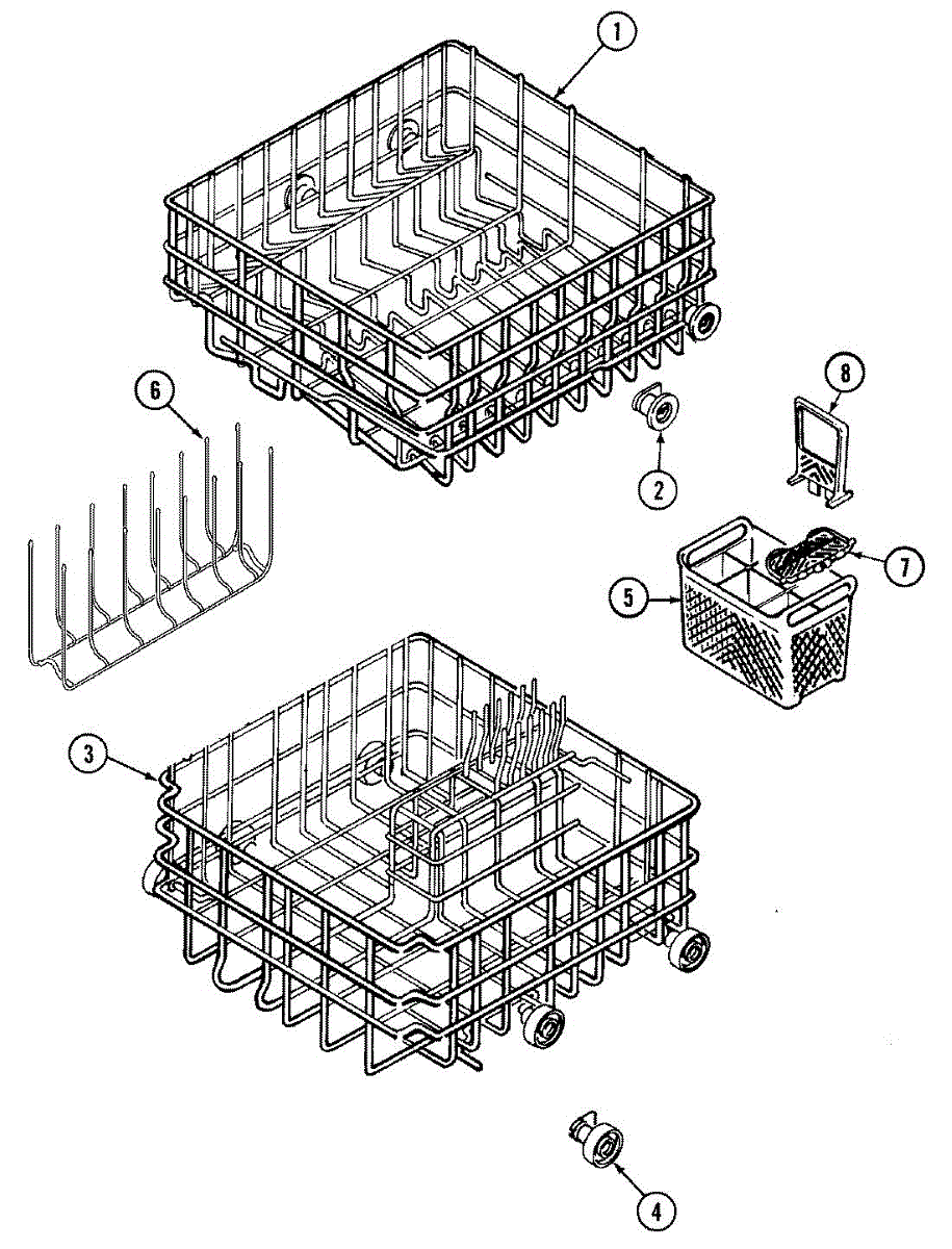 Replacement silverware basket for dishwashers. Holds and organizes utensils during wash cycles. Replace if cracked, broken, or falling apart.
