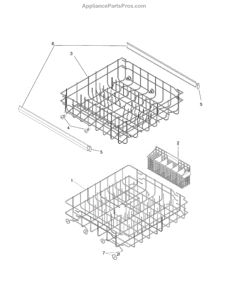 Complete lower dishrack assembly that slides on tub rails. Holds plates, bowls, and cookware. Replace when original rack is rusted, cracked, or damaged.