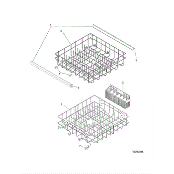 Complete lower dishrack assembly that slides on tub rails. Holds plates, bowls, and cookware. Replace when original rack is rusted, cracked, or damaged.