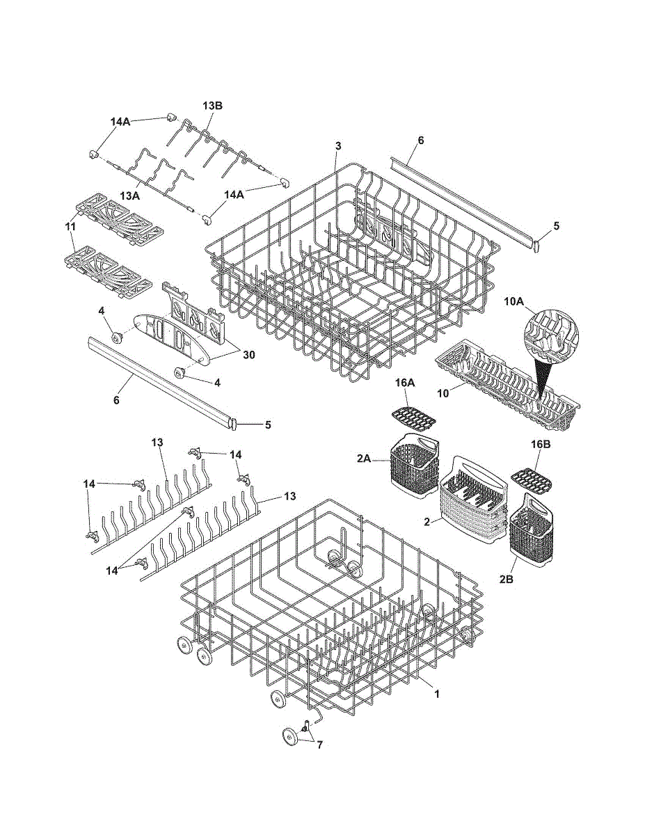 Upper rack assembly for dishwashers. Holds dishes and glasses during wash cycles. Replace if cracked, rusted, corroded, or damaged from regular use.