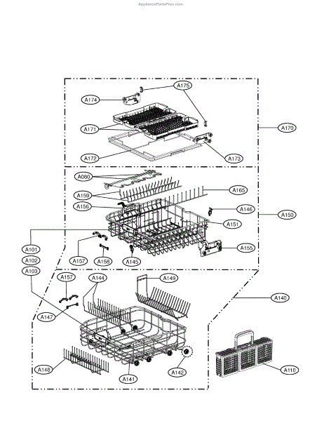 The Silverware Basket is an OEM part for LG dishwashers. As an integrated rack in the lower dish rack assembly, it neatly holds cutlery like forks and knives during wash cycles. Proper installation in accordance with manufacturer instructions is important for function.