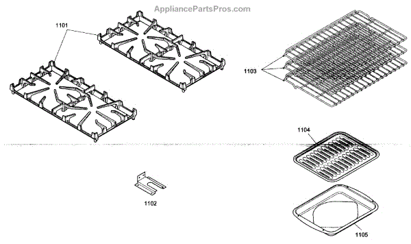 This cooktop burner grate supports cookware over the flame, keeping pots and pans stable during use. Replace a cracked or warped grate to restore a level cooking surface and proper clearance above the burners.
