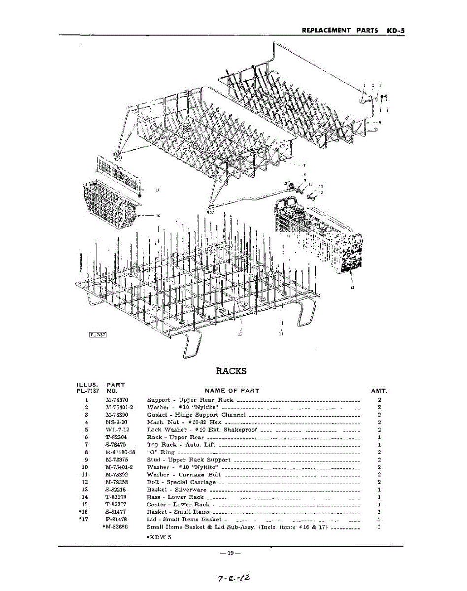 Parts for Kitchenaid KD5: 19 - Racks Parts