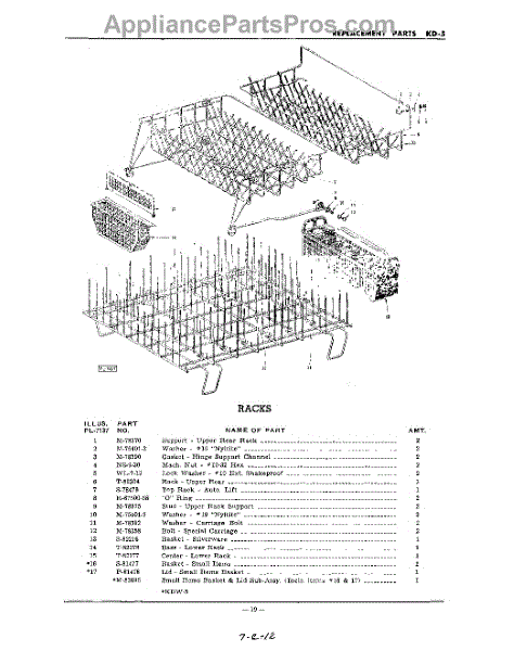 Parts for Kitchenaid KDA5: 19 - Racks Parts
